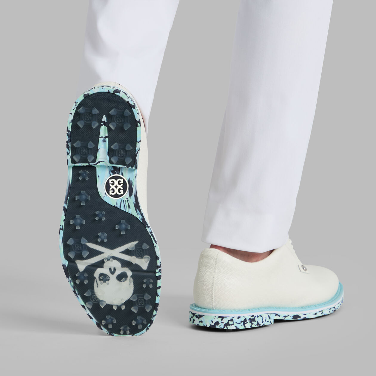 G/FORE MEN'S GALLIVANTER CAMO SOLE LEATHER GOLF SHOE - SNOW / CENOTE