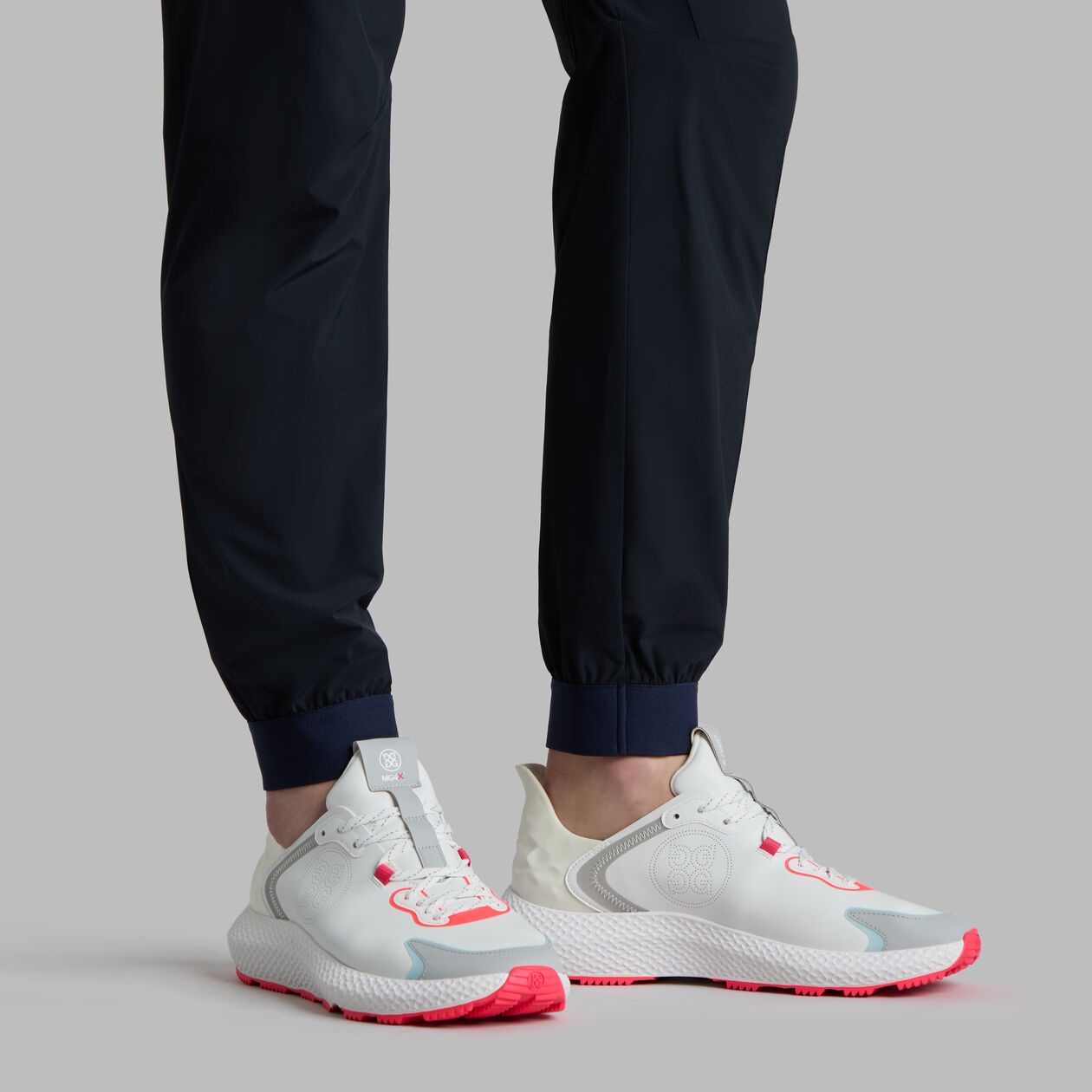 THE MG4X2 PERFORATED LOGO HYBRID GOLF CROSS TRAINER IS A MULTI-FUNCTIONAL SHOE THAT TAKES YOU EASILY FROM THE STREET TO THE COURSE. IDEAL FOR WALKS, LIGHT WORKOUTS, PICKLEBALL SESSIONS, AND TENNIS GAMES, THIS SHOE IS EASY TO SLIP ON AND ELEVATE ANY OUTFIT. IT BOASTS AN AUXETIC LATTICE MIDSOLE FOR ALL DAY SUPPORT, A SAWTOOTH TRACTION PATTERN FOR GRIP, AND OUR STAPLE TRIPLE-DENSITY FOAM CUSHION FOOTBED FOR A MASSAGE WITH EVERY STEP. VERSATILE, COMFORTABLE, AND LIGHTWEIGHT, THIS MG4X2 IS A NO-BRAINER ADDITION TO YOUR CLOSET.
