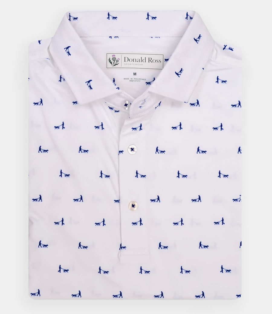 The Chicago Men’s Print Polo by Donald Ross Sportswear is a performance golf polo with a dog walker print. Our classic polo is perfect for both the fairway and the clubhouse, and also available in seven different color ways.