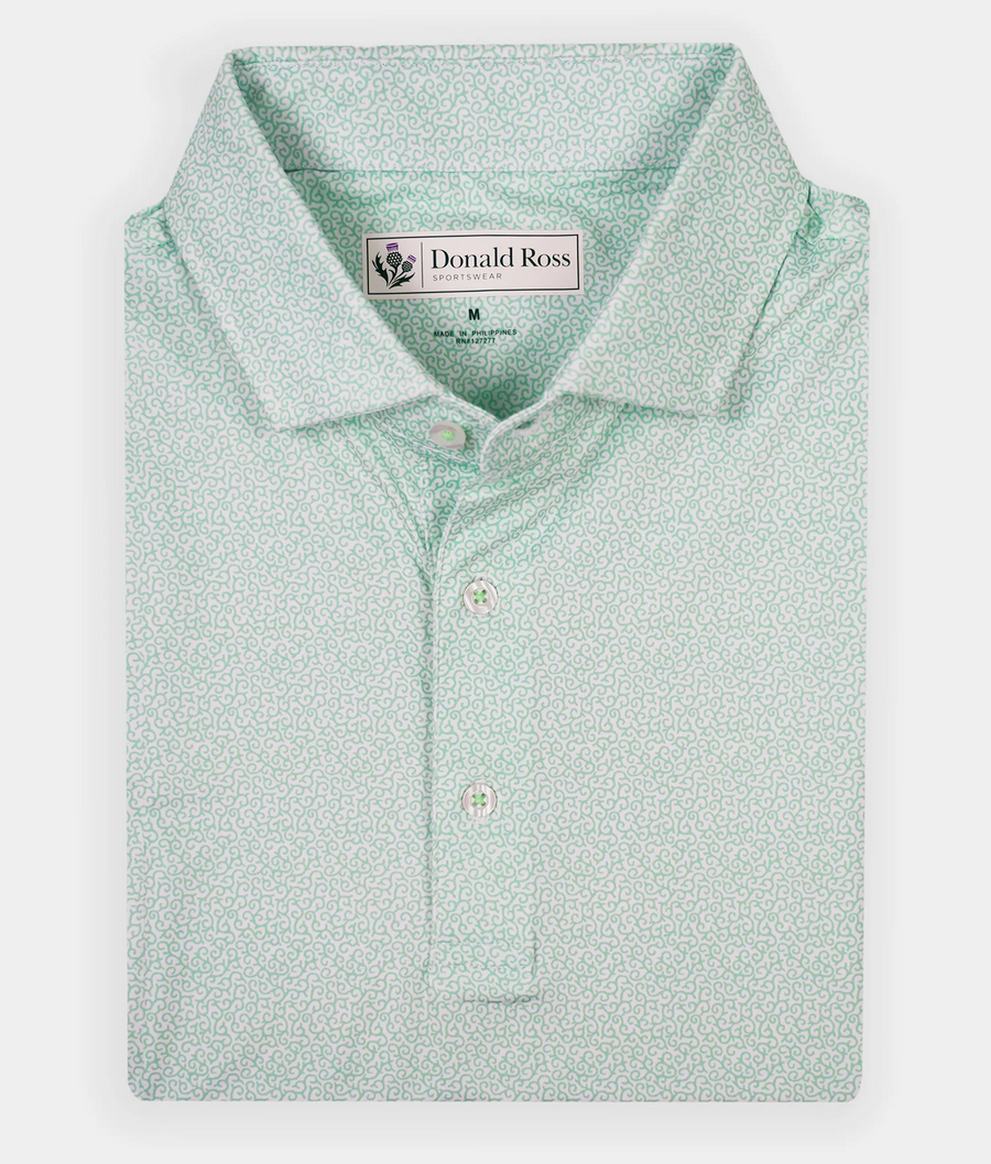 The Holden by Donald Ross Sportswear is a vine squiggles print jersey performance polo. This polo is available in five colors.