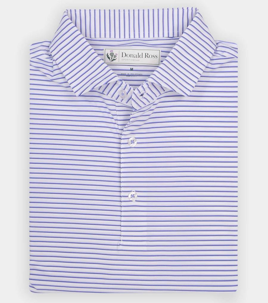 The Nantucket, Men’s Melange Feeder Stripe Polo by Donald Ross Sportswear. This Performance golf polo with a shadow stripe and melange finish. Our classic polo is perfect for both the fairway and the clubhouse, and also available in nine different color ways.