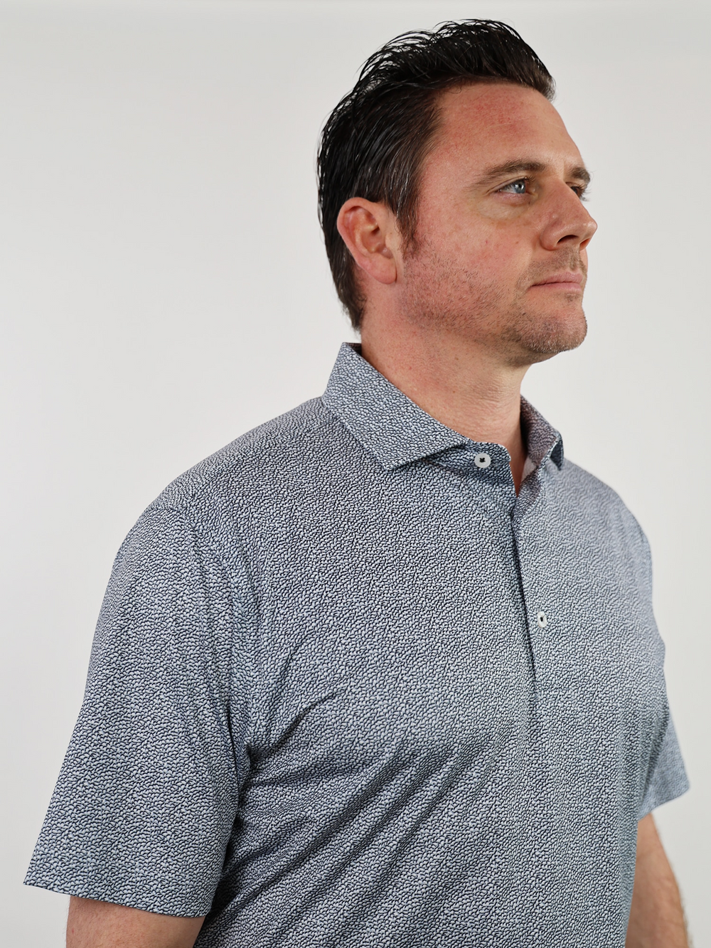 The Winchester Men’s Print Polo by Donald Ross Sportswear is a performance golf polo with a water drop print. Our classic polo is perfect for every day, and also available in three different color ways.