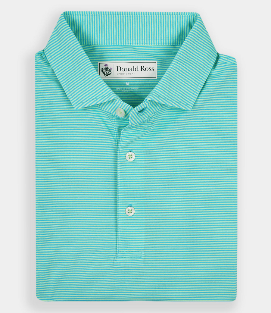 The Windsor by Donald Ross Sportswear is a feeder stripe jersey performance polo. This polo is available in nine colors.