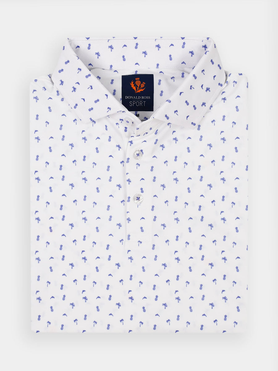 Donald Ross Mens Sport Fit DAVID Polo - WHITE / PERIWINKLE