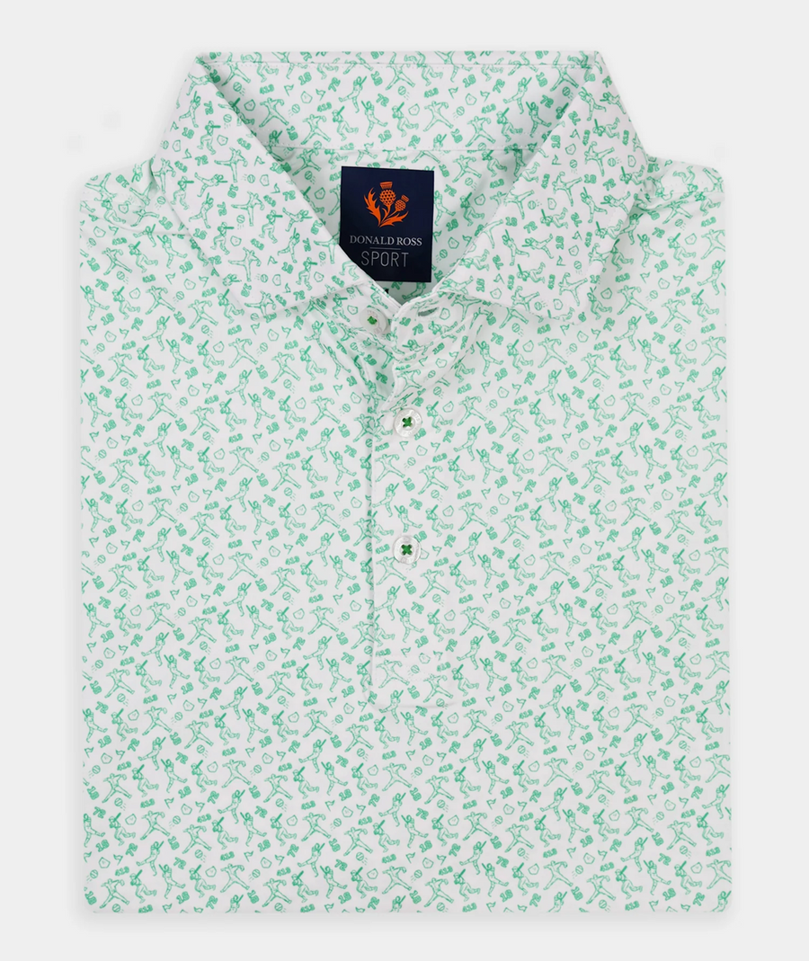 Donald Ross Mens Sport Fit GAVIN BASEBALL Print Polo - WHITE / CLOVER