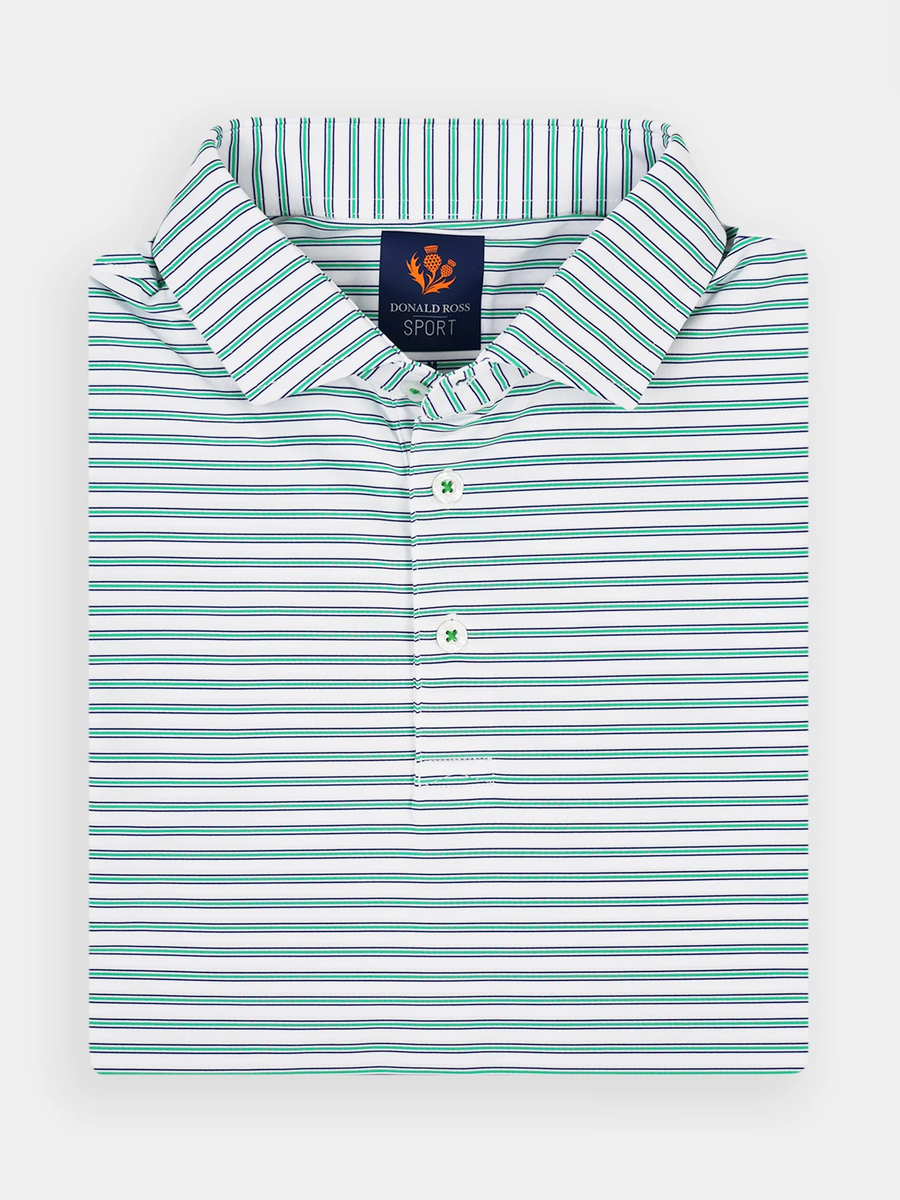 Donald Ross Mens Sport Fit HARRIS Polo - WHITE / CLOVER / NAVY