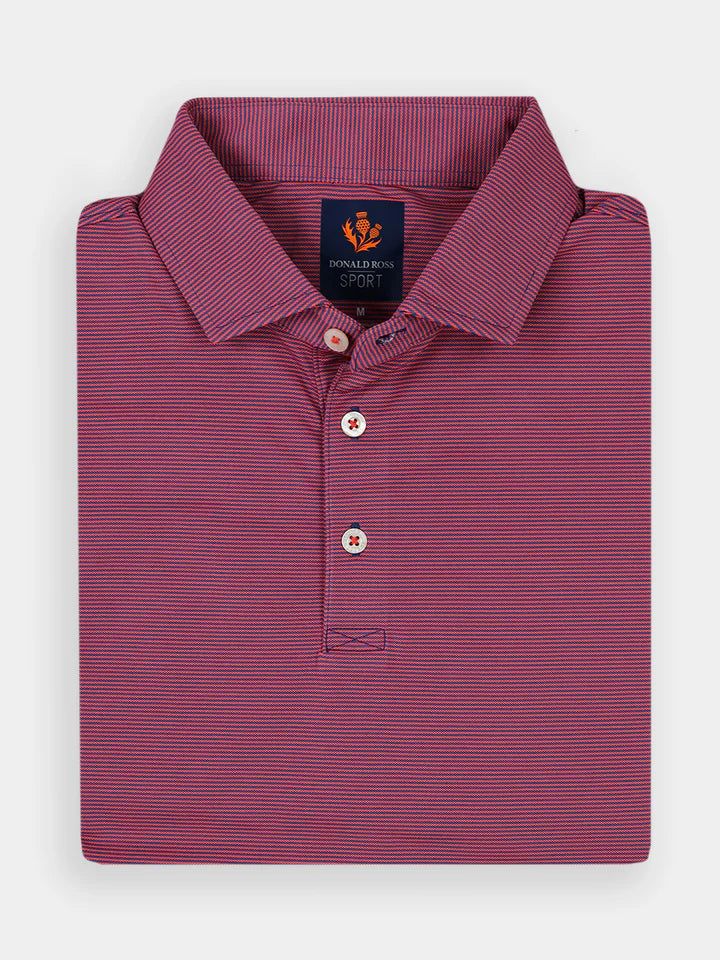 Donald Ross Mens Sport Fit LEO Polo - DENIM / RED APPLE