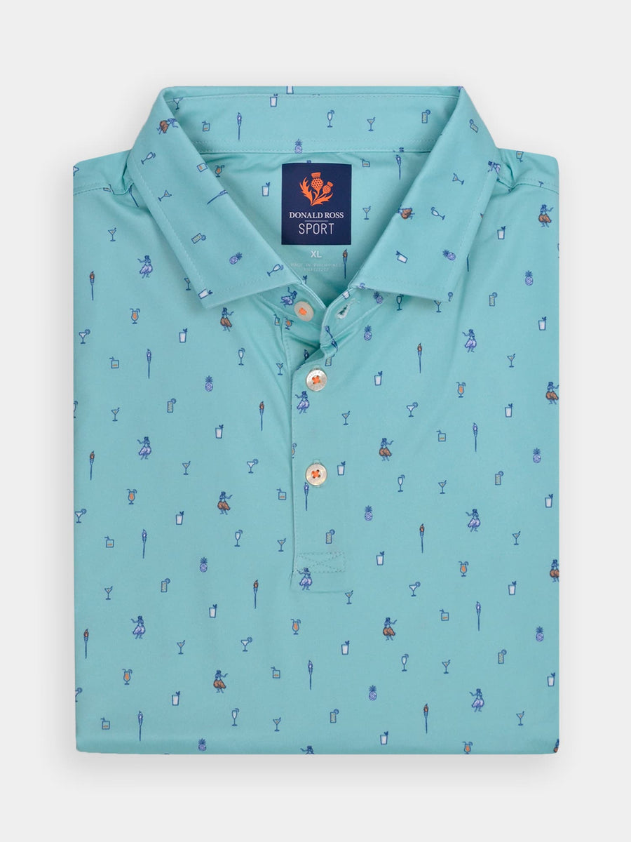 The Maurice, Men’s Hawaiian Tito Print Polo by Donald Ross Sportswear. The Maurice features a Hawaiian Tito print polo offered in seven unique color ways. Constructed from our performance jersey fabric, this garment also feels cool to the touch and stays dry with moisture-wicking fabric. The Maurice offers full stretch and breathability for overall comfort on and off the course.