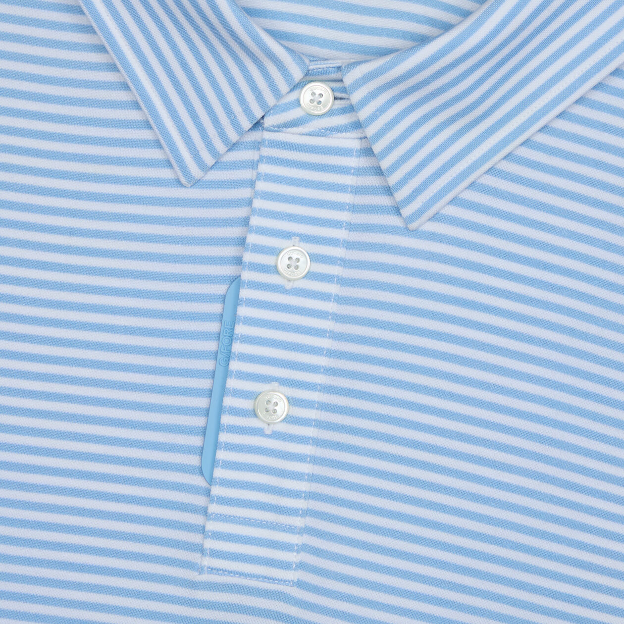 MADE WITH OUR SUPER SOFT STRETCH KNIT FABRIC, THIS STRIPED POLO IS COMFORTABLE, BREATHABLE, AND IDEAL FOR ALL DAY PLAY. IT'S ALSO EQUIPPED WITH UPF 50+, OFFERING A LAYER OF SUN PROTECTION THAT'S A MUST-HAVE FOR HOT DAYS ON THE GREEN. WEAR YOURS WITH A PAIR OF STRAIGHT LEG TROUSERS, AND YOU'RE GOOD TO GO.