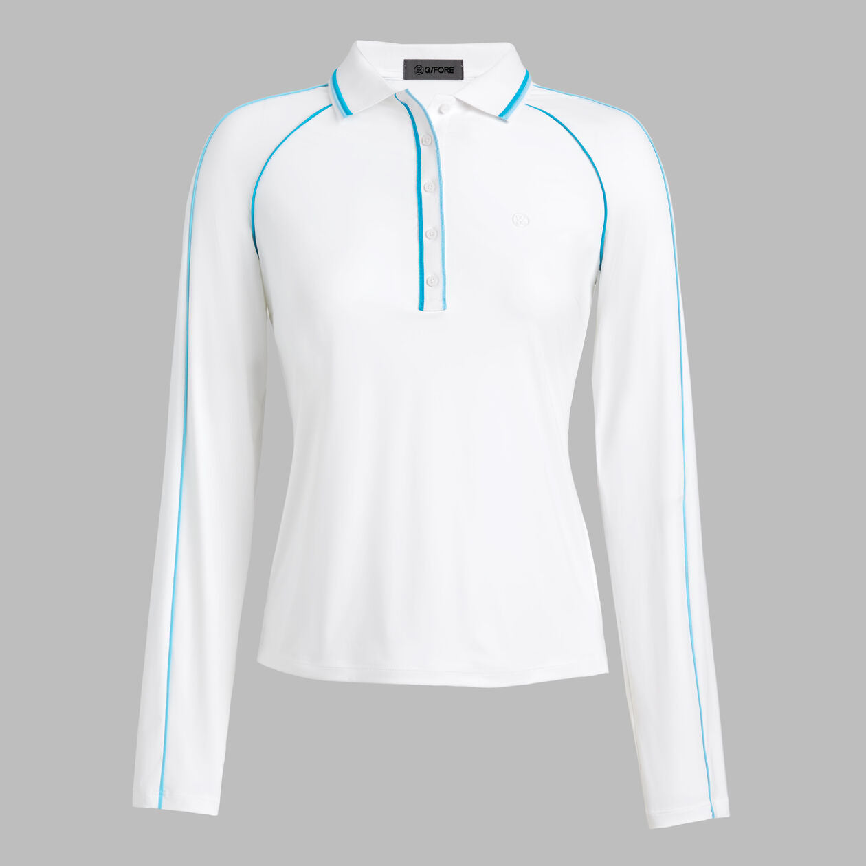LOCK IN ON YOUR GAME WITH THE CONTRAST TRIM SILKY TECH NYLON LONG SLEEVE POLO. MADE WITH EXTREMELY LIGHTWEIGHT SILKY TECH NYLON, IT KEEPS YOU COMFORTABLE ALL DAY LONG WITH MOISTURE-WICKING, ODOR-INHIBITING, AND COOLING PROPERTIES. OH, AND IT HAS UPF 50+ FOR SUPERIOR SUN PROTECTION — WHAT MORE COULD YOU WANT FROM A POLO?