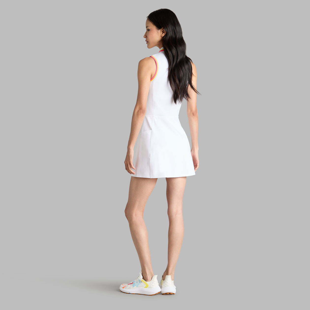 YOU LOVE THE KNOCKOUT A-LINE SKORT, SO WE TURNED IT INTO A DRESS, TOO. MADE WITH OUR SMOOTH SCUBA STRETCH FABRIC, THIS DRESS IS DESIGNED TO MOVE WITH YOU — WHETHER YOU'RE HITTING BALLS ON THE PICKLEBALL COURT OR GRABBING COFFEE IN BETWEEN RUNNING ERRANDS. IT'S SUPER EASY TO TOSS ON AND INSTANTLY LOOK PUT TOGETHER — PAIR IT WITH OUR MG4X2 HYBRID GOLF CROSS TRAINER AND A TRUCKER HAT FOR A CUTE, COMFORTABLE OUTFIT.