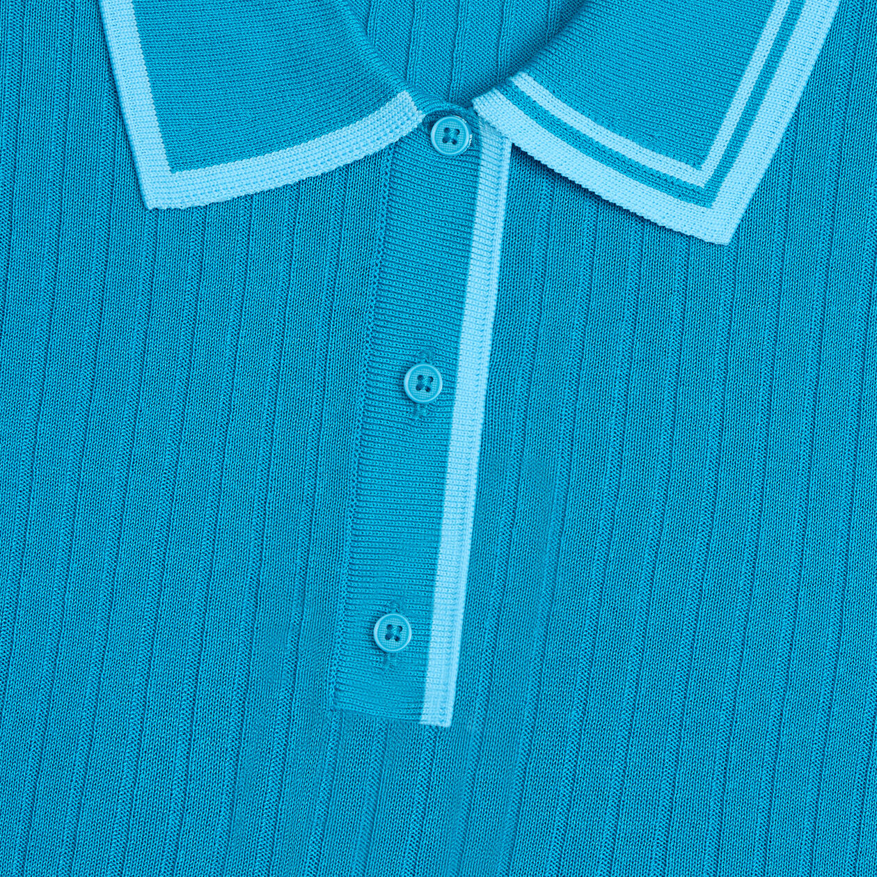 FLATTERING AND VERSATILE, THIS RIBBED POLO SWEATER IS A MUST-HAVE BASIC THAT'S ANYTHING BUT BASIC. MADE WITH 16GG COTTON BLEND RIB KNIT, IT'S COMFORTABLE, BREATHABLE, AND SOFT — PERFECT FOR ALL DAY WEAR. WHETHER YOU PAIR IT WITH JEANS, TROUSERS, OR A SKORT, YOU'LL LOOK (AND FEEL) READY FOR WHEREVER THE DAY TAKES YOU.