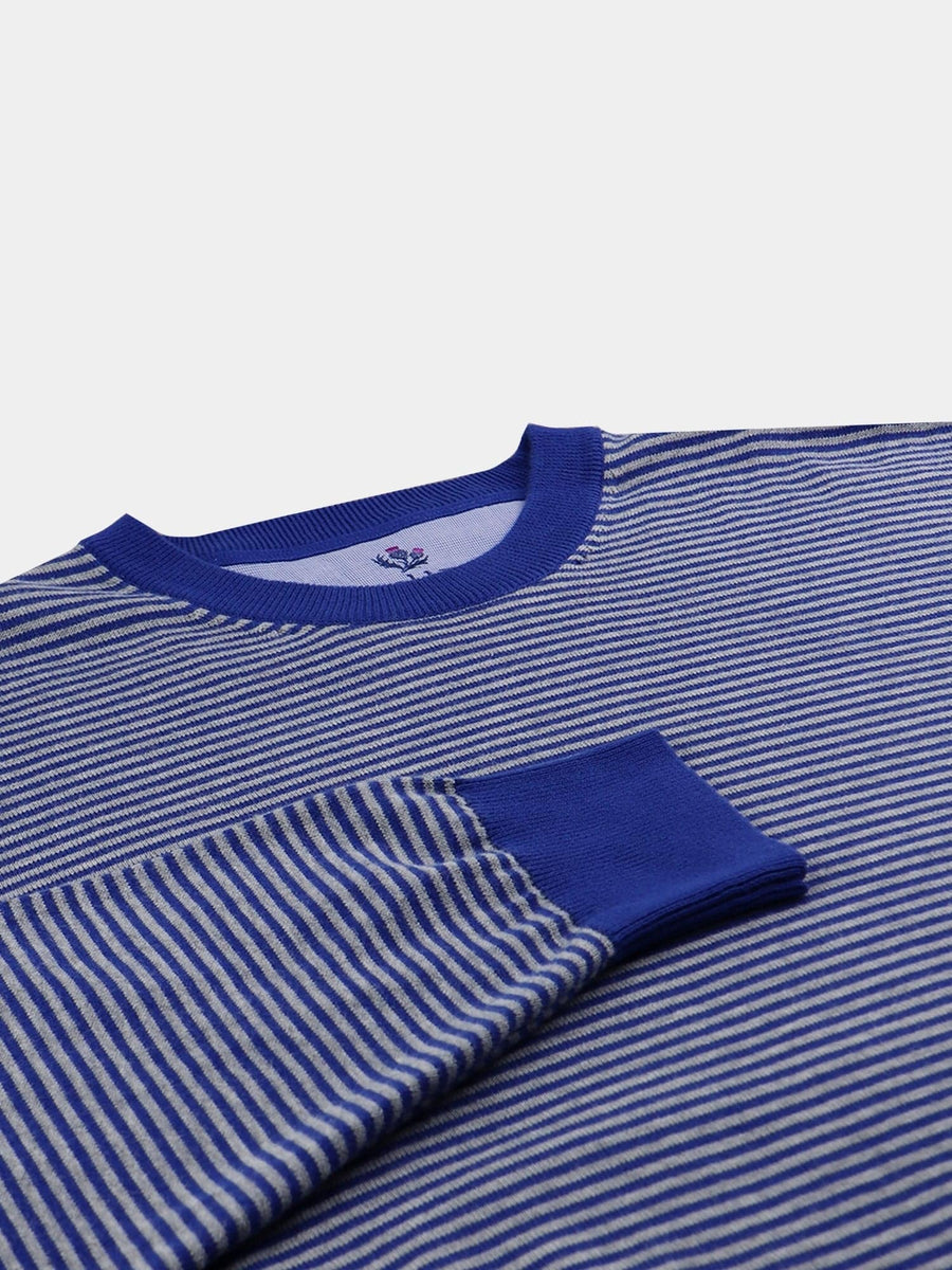 Whether you’re dressing for an air conditioned day in the office, or a breezy summer night on the coast, this lightweight crewneck sweater offers a breathable layer to keep you comfortable. Constructed from soft and smooth 100% superfine cotton jersey with classic ribbed sleeve cuffs and bottom.