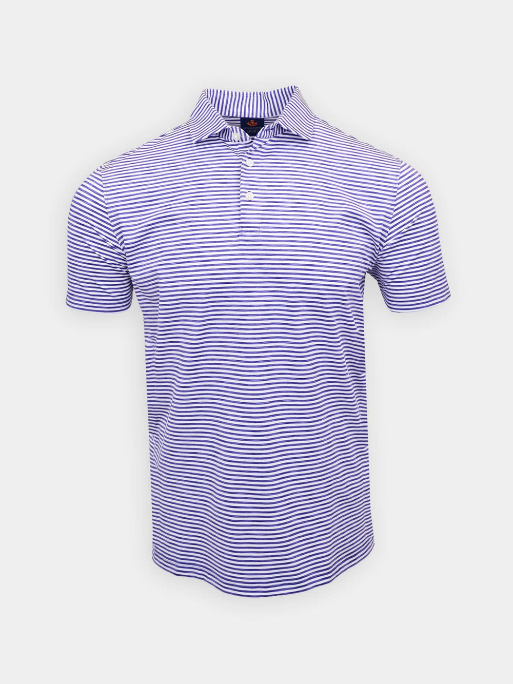 The Cecil, Men’s Feeder Stripe Polo by Donald Ross Sportswear. A polo with a space dye feeder stripe offered in seven flattering color ways that add a subtle pop of color to any outfit. Constructed from our best-selling technical performance jersey, this garment feels cool to the touch and stays dry with moisture wicking fabric. The Men’s Feeder Stripe Polo offers full stretch and breathability for endless comfort on and off the course.