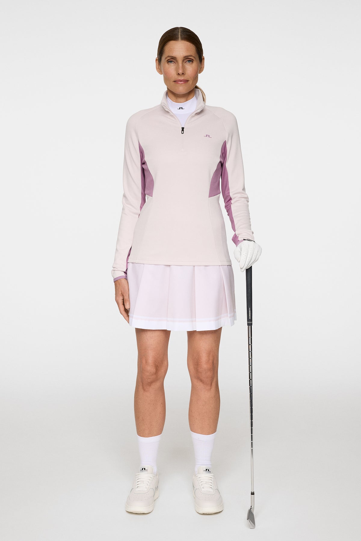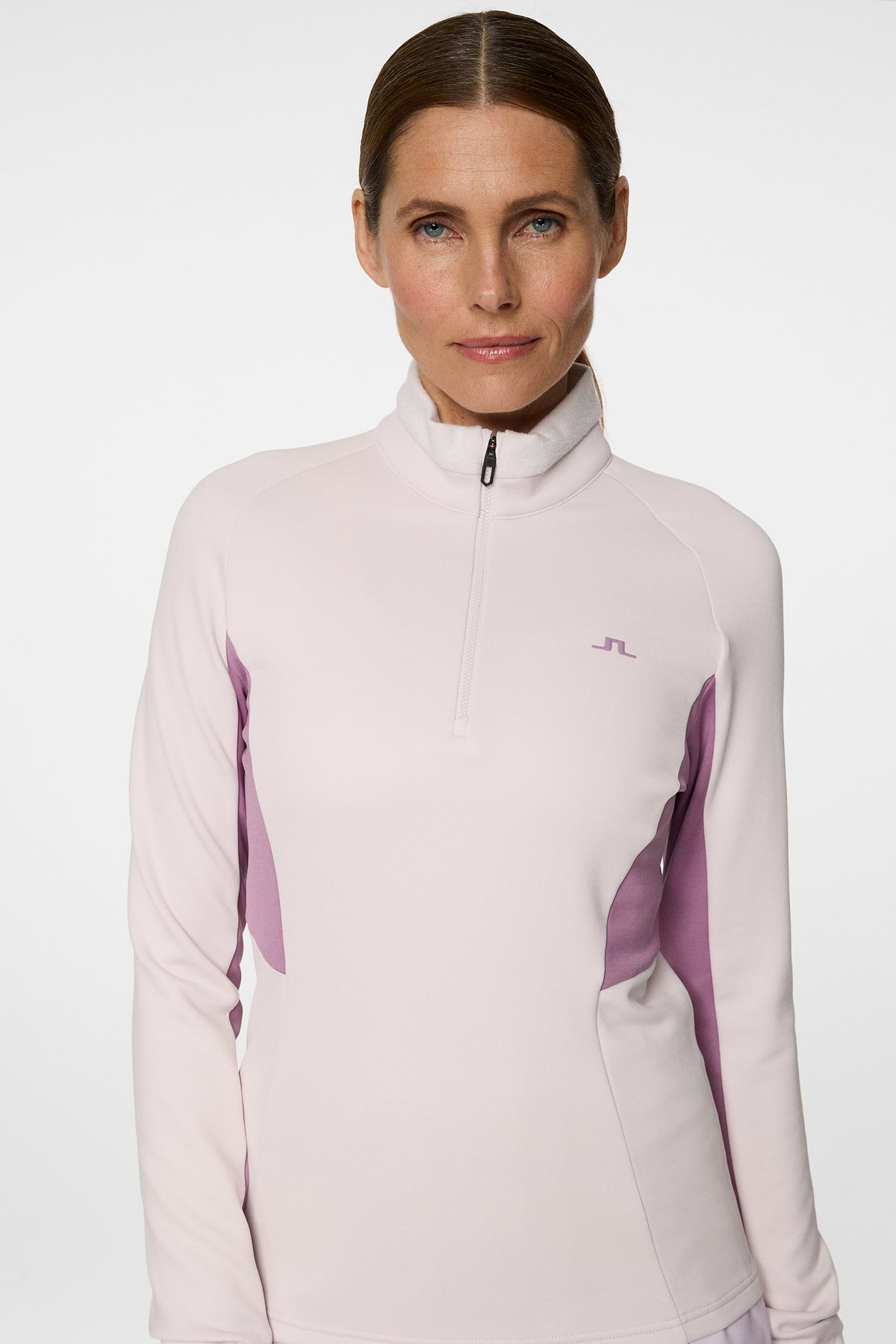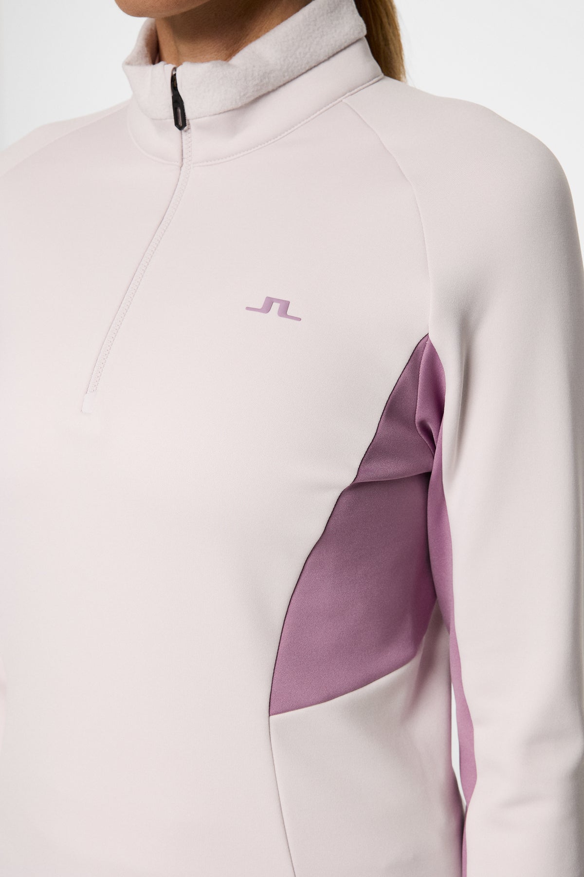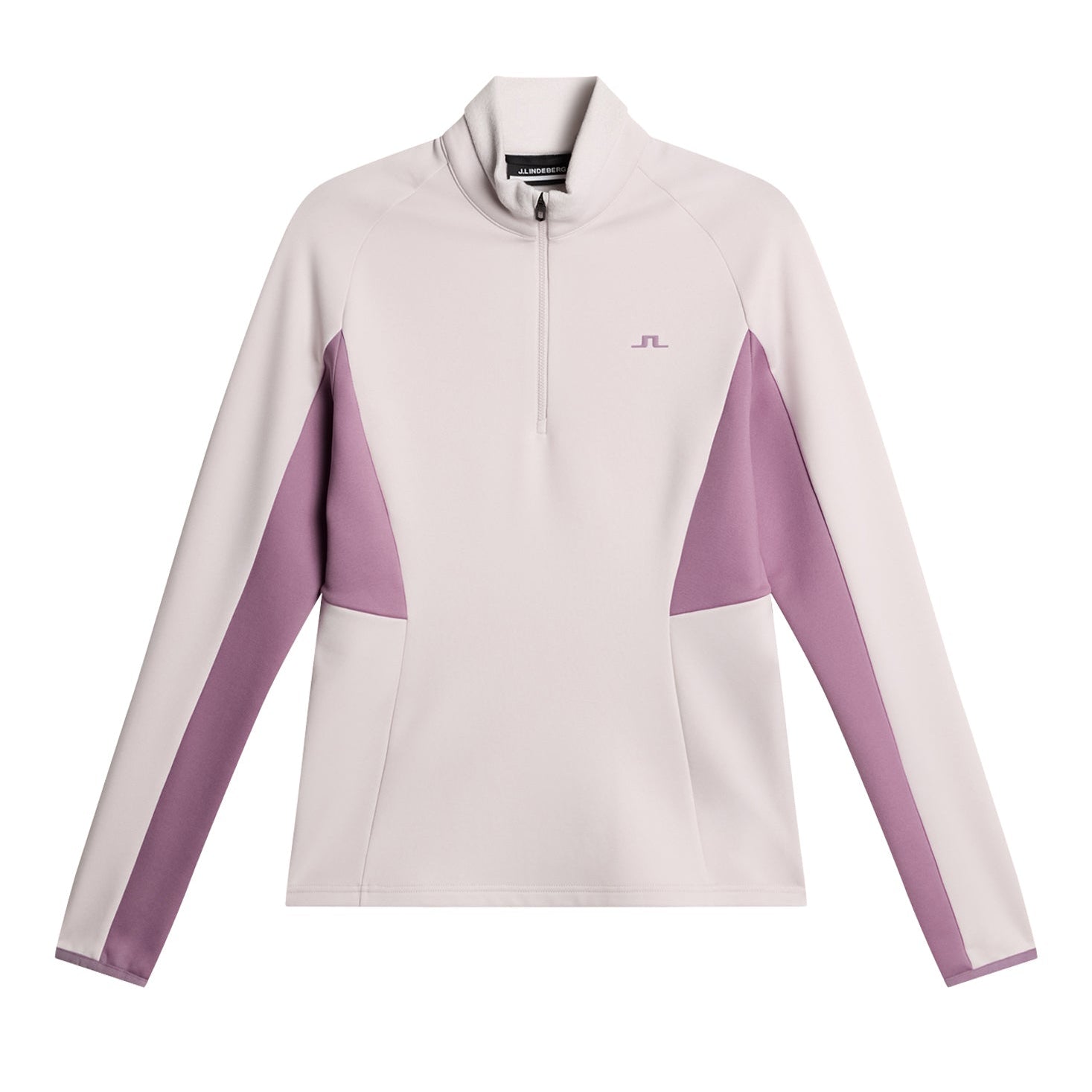 The J.Lindeberg Women's Arja Quarter Zip Mid Layer in Gray Lilac blends technical performance with feminine styling for a refined layer you'll reach for on every cool-weather round. Made from soft TX Stretch Fleece, this mid layer offers a comfortable brushed interior, exceptional flexibility, and moisture-wicking technology. The color-blocked paneling and silicone logos create a bold, sporty look, while the quarter-zip closure allows for easy ventilation. Perfect for layering, the Arja Mid Layer is as stylish as it is functional.