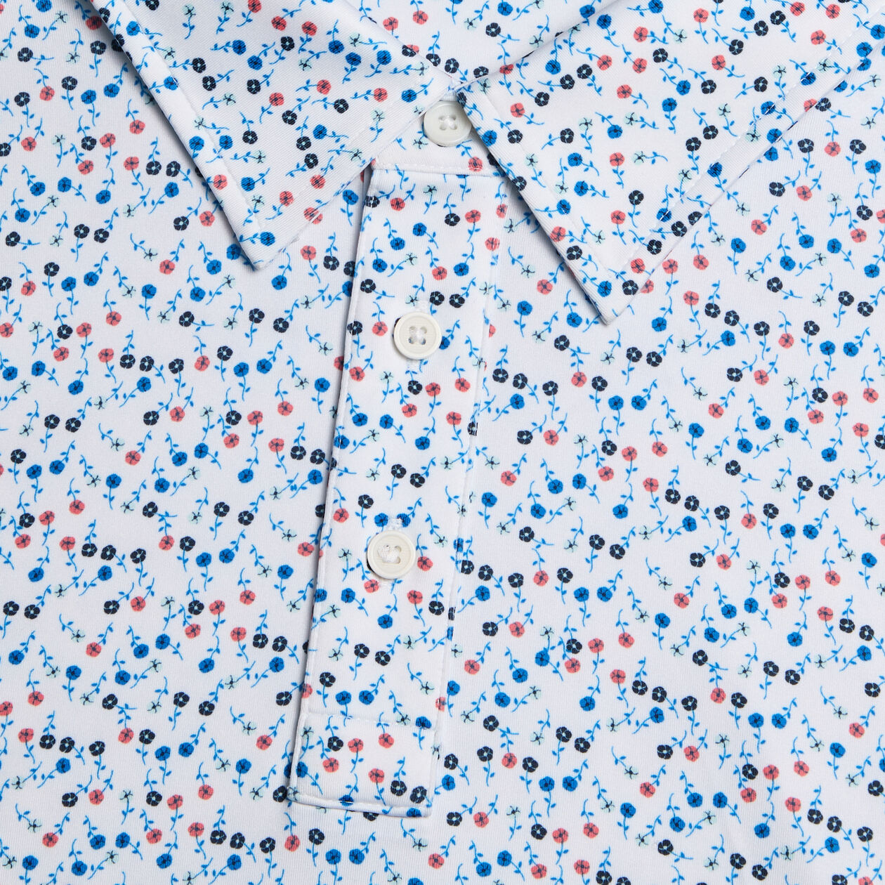 COVERED IN OUR AYE POPPY FLORAL PRINT, THIS TECH JERSEY POLO IS THE ULTIMATE EVERYDAY ESSENTIAL FOR DAYS AT THE CLUBHOUSE, THE COURSE, AND IN BETWEEN. MADE OF SMOOTH TECH STRETCH JERSEY WITH MOISTURE WICKING AND ODOR INHIBITING PROPERTIES, PLUS UNBEATABLE 4-WAY STRETCH, IT'S A MUST-HAVE FOR ANY GOLFER'S CLOSET.