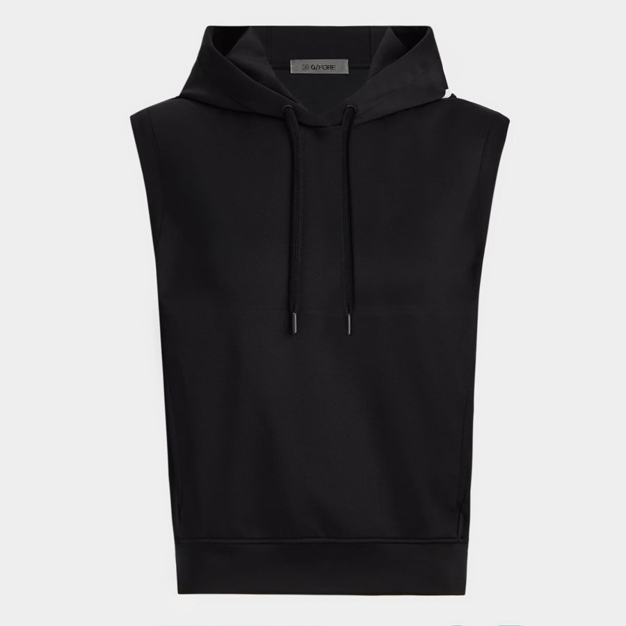 COMFORT ISN'T UNDERESTIMATED IN THIS CROPPED SLEEVELESS HOODIE. MADE OF 4-WAY STRETCH NYLON THAT'S EXTRA BREATHABLE AND ODOR INHIBITING, IT'S GREAT FOR ANY ACTIVITY IN AN EFFORTLESSLY RELAXED FIT. FROM EVERYDAY TO EXERCISE TO LOUNGING, THIS COMFY STYLE PAIRS WELL WITH A JOGGER STYLE PANT AND OUR G.112 STREET SHOES FOR A POP OF COLOUR.