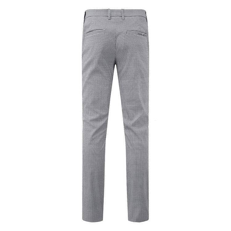 These golf pants feature a shirt gripper waistband and built-in stretch function for comfort and perfect fit. The pant has an all-over sublimated houndstooth pattern.