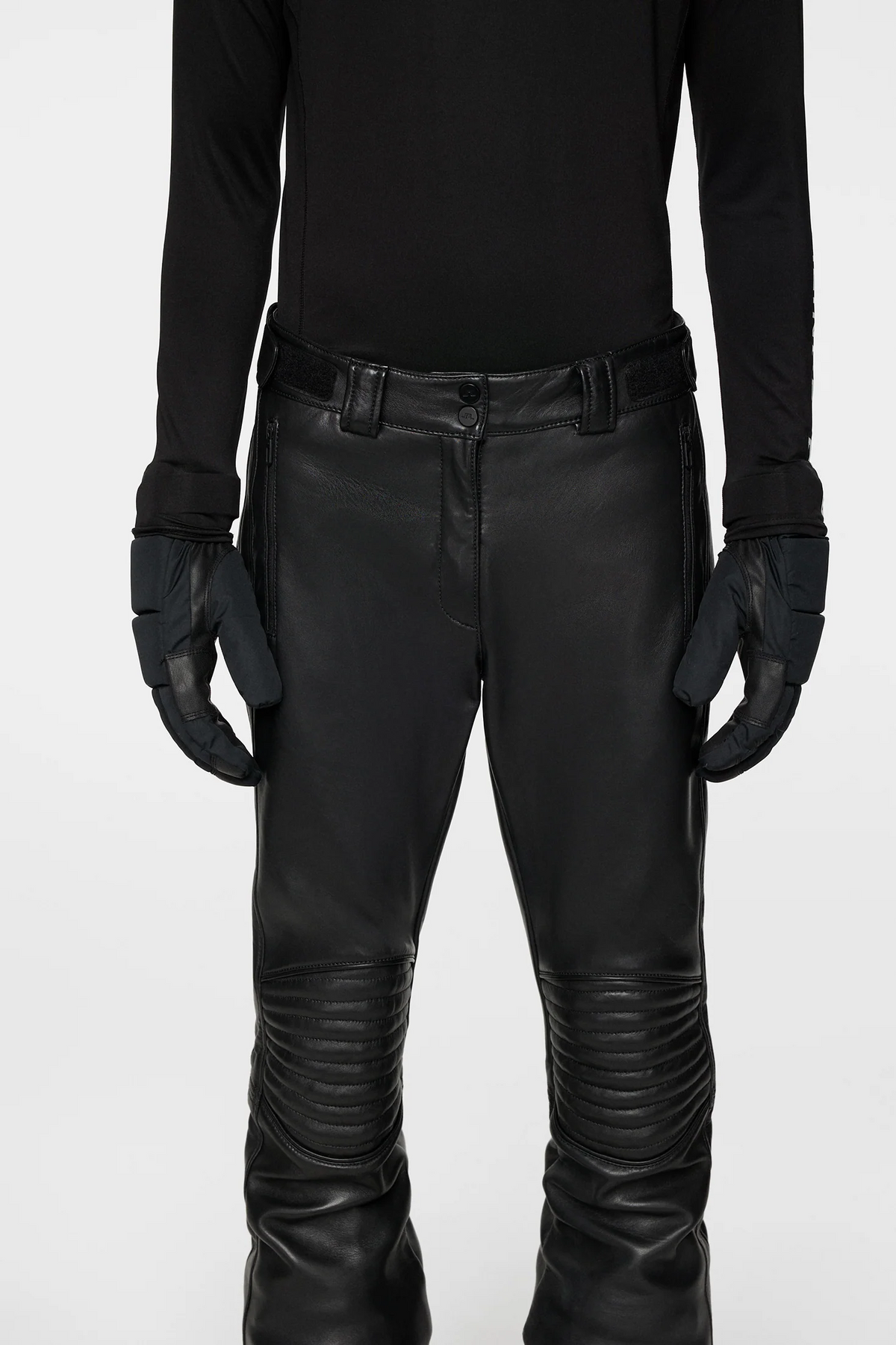 Hit the slopes in style and luxury in our premium Sonny Leather Pants, crafted from water-repellant lamb leather bonded with fleece. They feature quilt padding at the knees for enhanced protection and durability, while a snow gaiter at the bottom leg provides added defense against the elements. The iconic JL Bridge logo in metal at the leg and embroidered JL logo detailing at the center back waistband adds a touch of signature flair.
