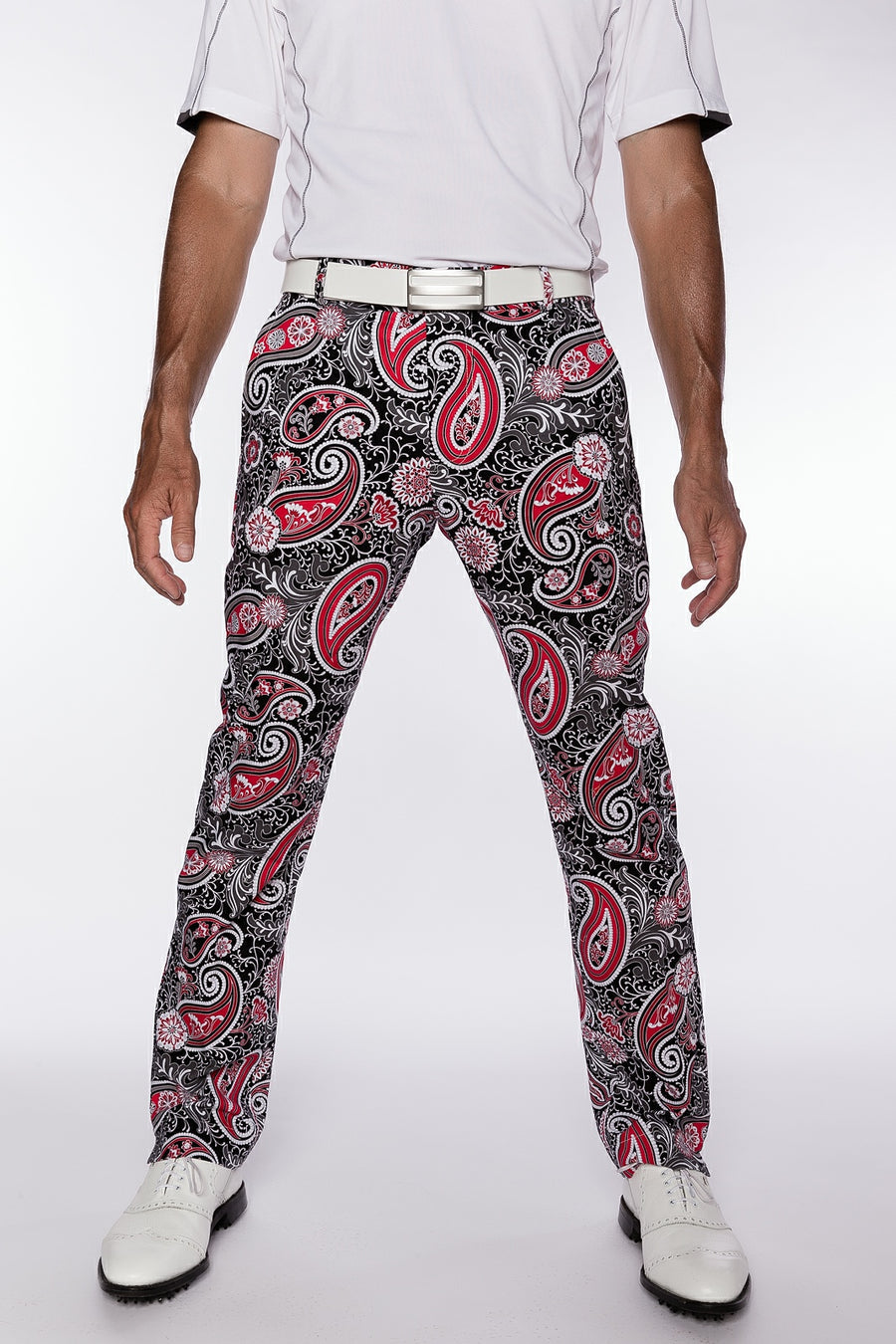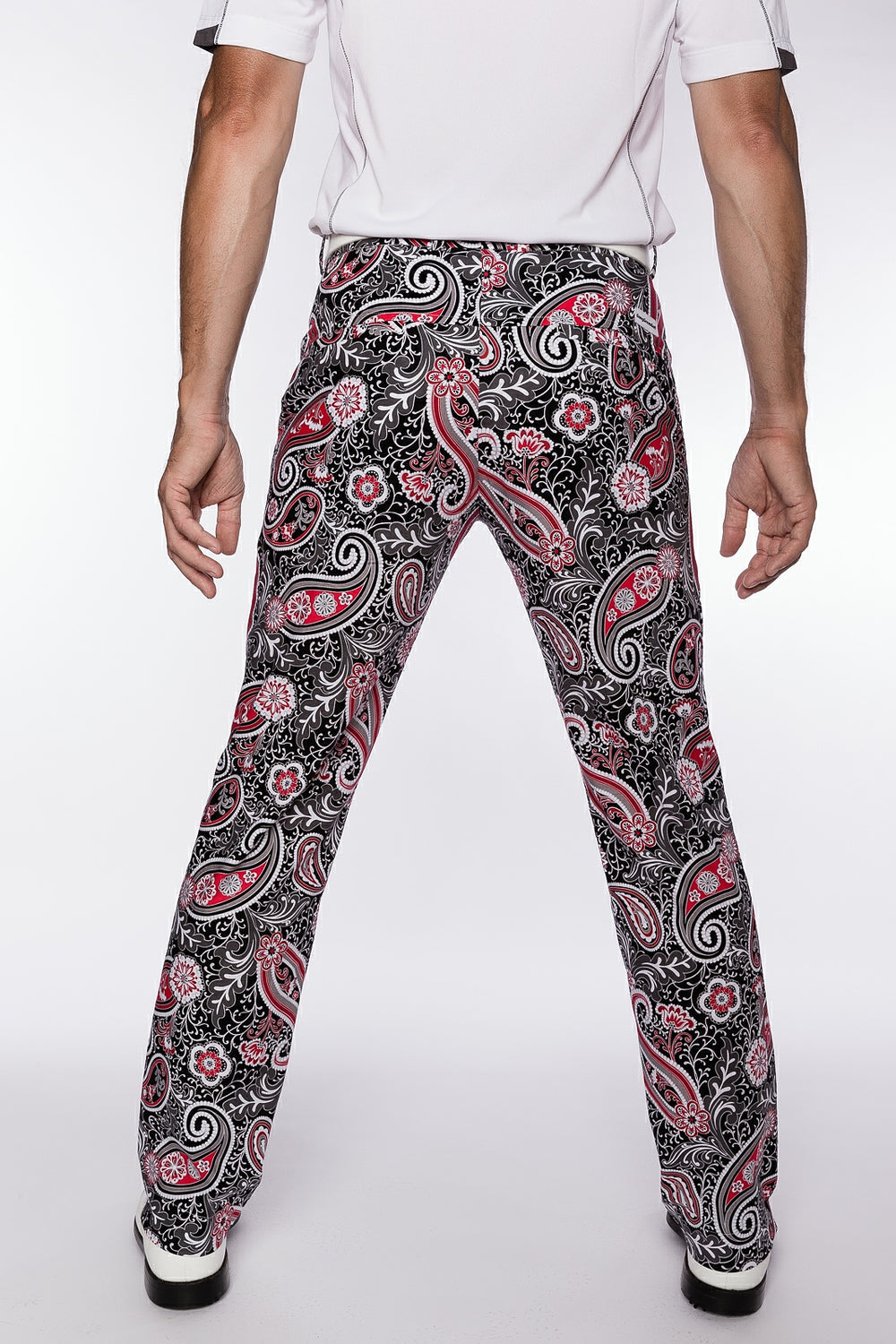 Sport Monaco Slim Fit Paisley Pint Cotton Pants - BLACK / RED / MULTI