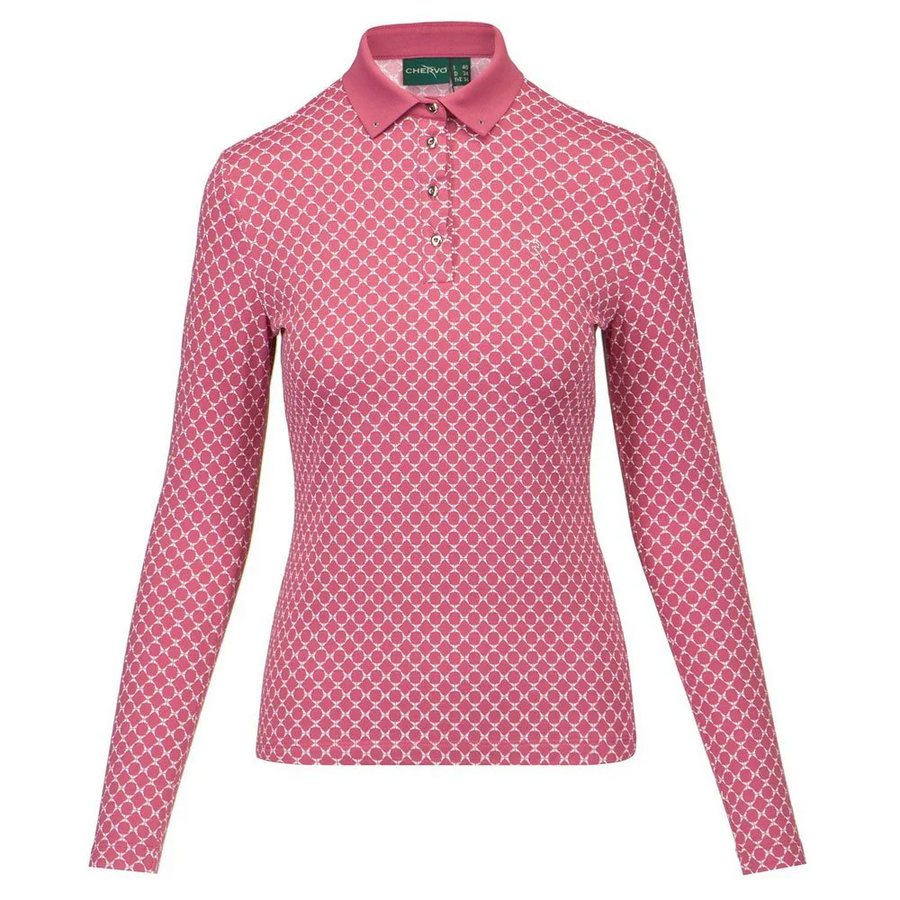 Arais Pro-therm polo shirt made of stretch thermal jersey, all-over printed with Logo Design pattern and solid color collar with two rhinestones applied on the tips. The compact and warm fabric, thanks to the brushing in contact with the body, is perfect for the entire winter season.
